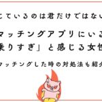 この記事では、マッチングアプリに「調子乗りすぎ」と感じる女性が多い理由を解説しました。また、「調子乗りすぎ」と感じる女性の対処法を解説しました。